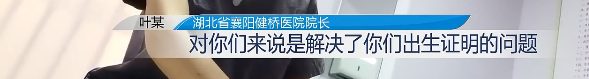 在中间人的介绍下,记者在湖北省襄阳健桥医院,只提供了宝宝的姓名等相关信息,连宝宝都没有到场,就在医院院长叶某的参与下,成功为一个“虚拟”宝宝办出真正的《出生医学证明》,就连“伪造”的宝妈病历档案以及宝宝的疫苗本都在医院成功备案。