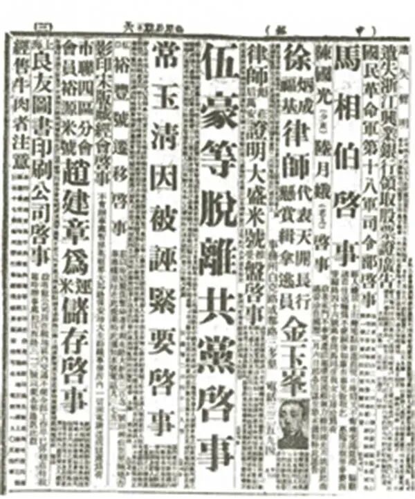 1932年2月,上海《时报》《申报》等多家报纸,先后在醒目的位置刊登了《伍豪等脱离共党启事》,启事以伍豪的名义宣称伍豪等243人即日起脱离共产党。启事一经刊出,就引起不小的震动。