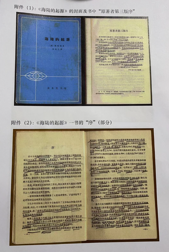 附件:《海陆的起源》一书的封面及书中的序、译者的话