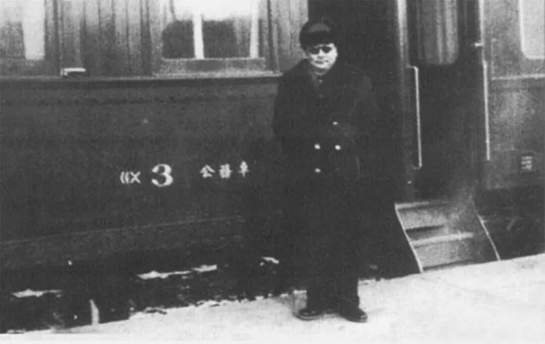 1949年12月,李克农送赴苏访问的毛泽东至满洲里时,在火车站留影。