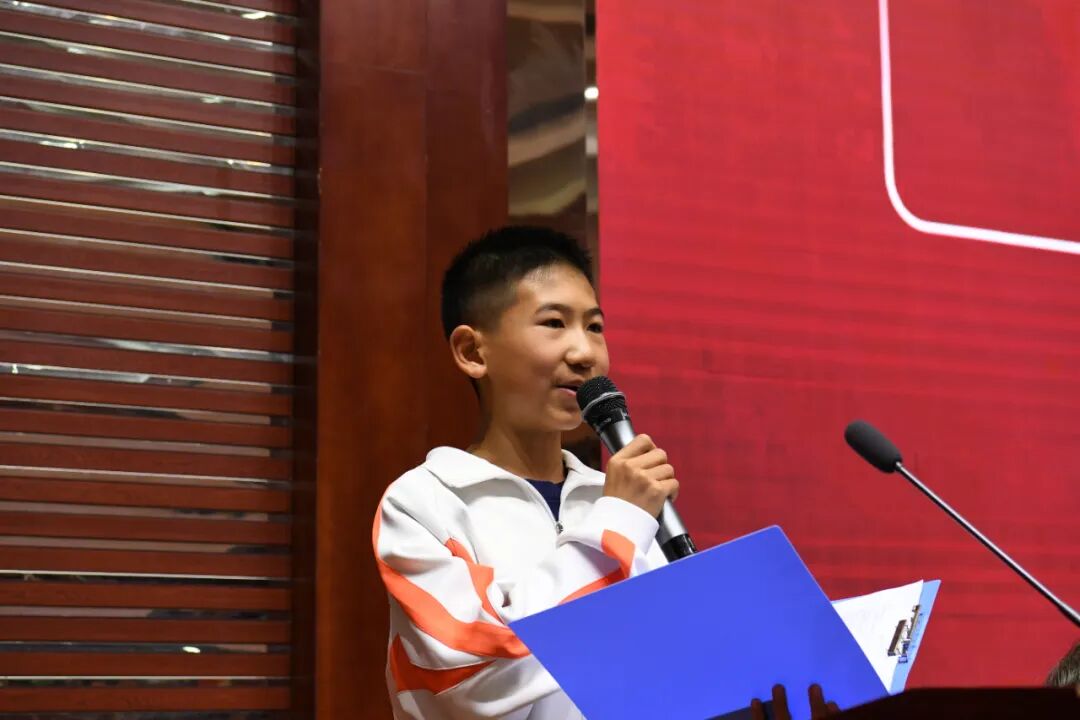 初二(10)班学生赵泰然带来朗诵《祖国万岁》;