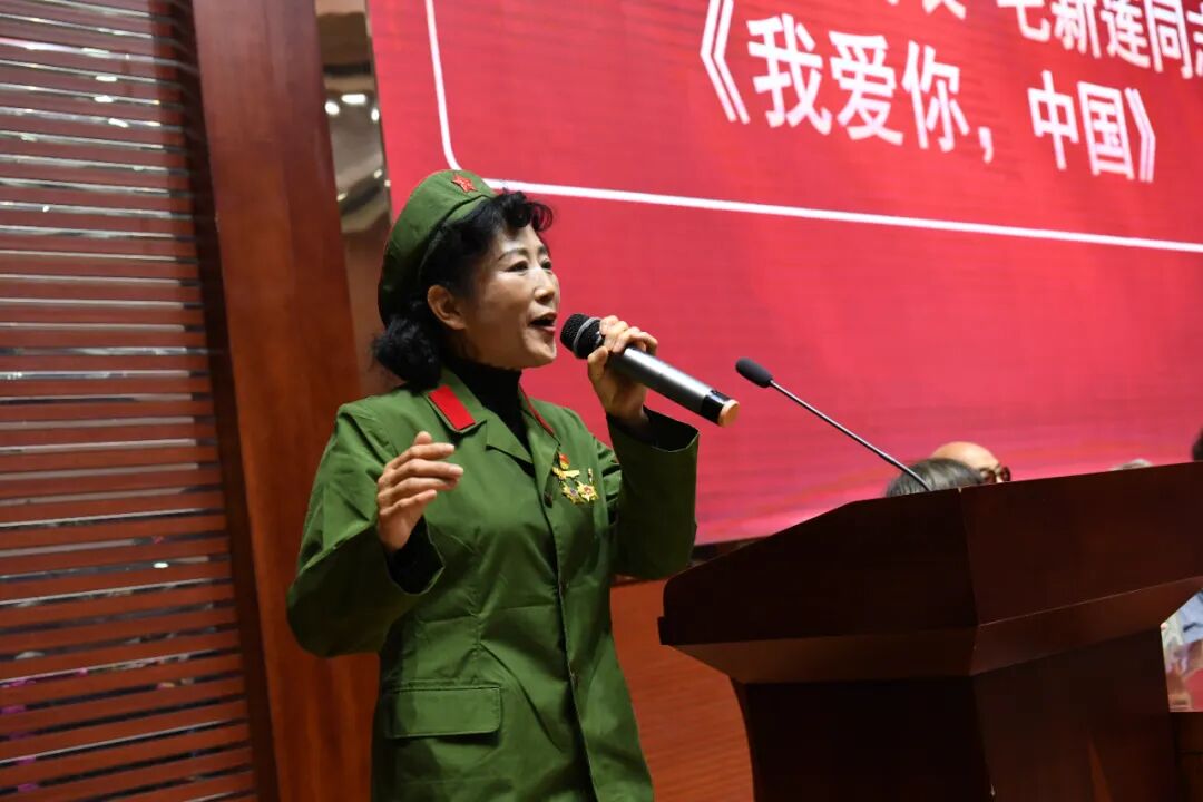 退役军人代表毛新莲演唱了《唱支山歌给党听》《我爱你·中国》。
