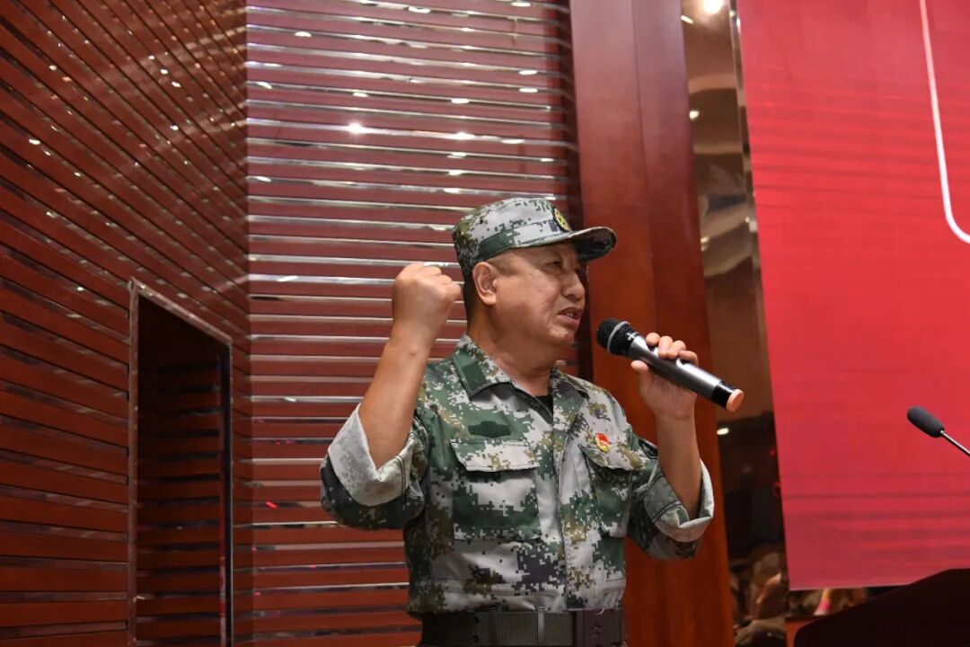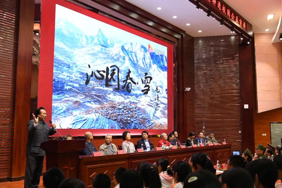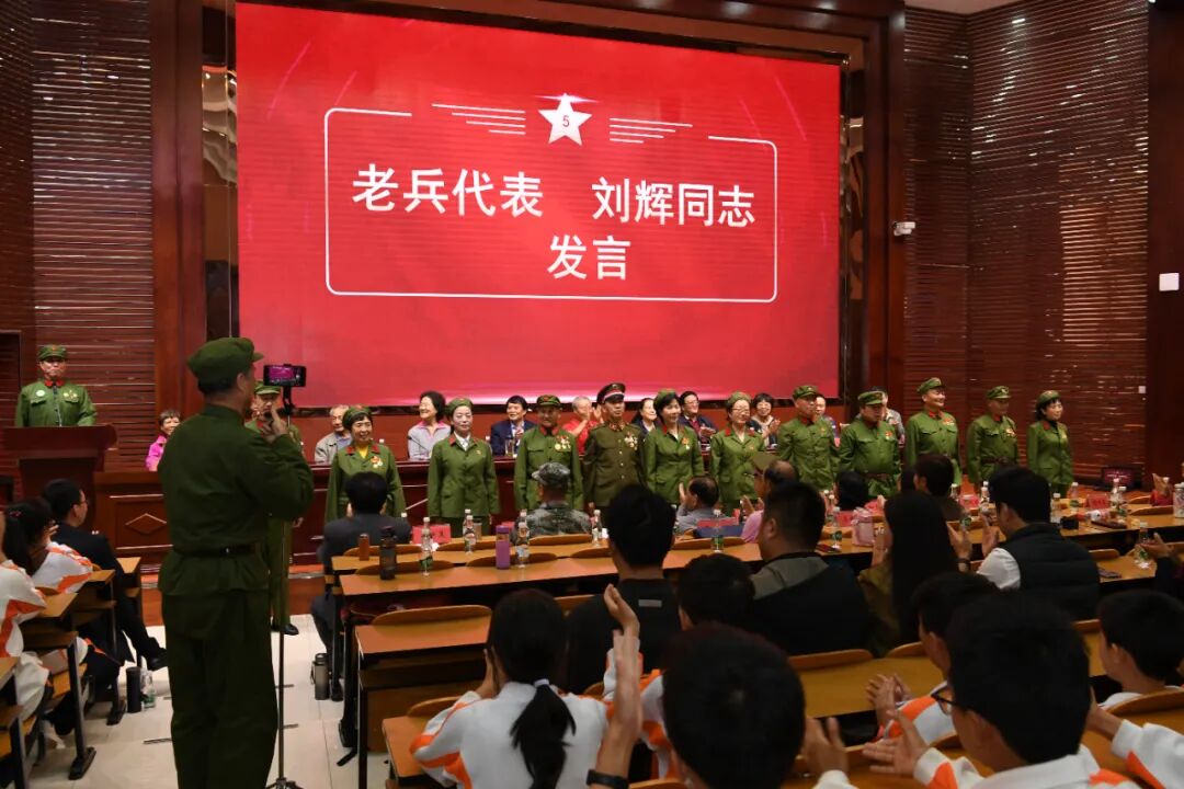 红色宣讲团团长刘辉代表老兵发言,他向同学们介绍了抗美援朝精神、上甘岭精神、雷锋精神以及老山精神,老兵们还现场演唱了振奋人心的军歌《打靶归来》。