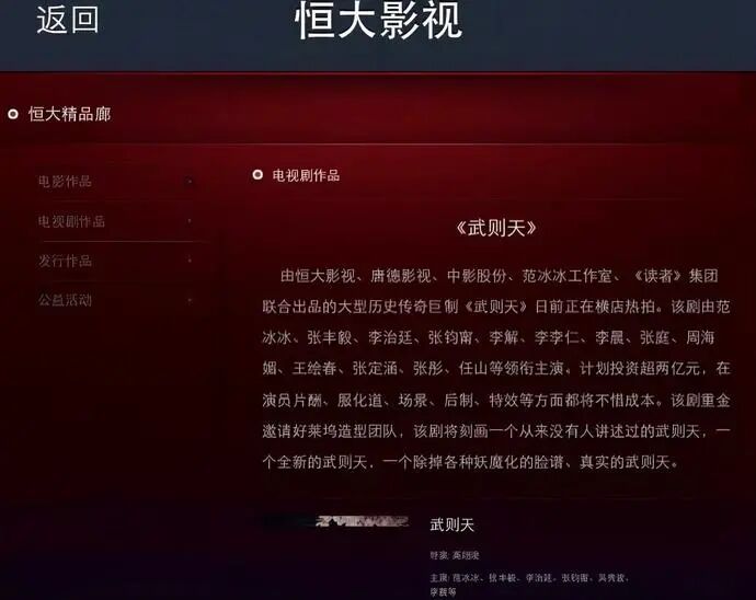 一方面,范冰冰所出演的很多作品,都有恒大资本的影子。