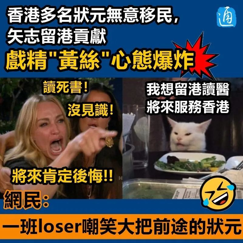 人家不移民你们就要骂。成班loser嘲笑人家大把前途的状元。看看自己的DSE成绩再出声啦,垃圾