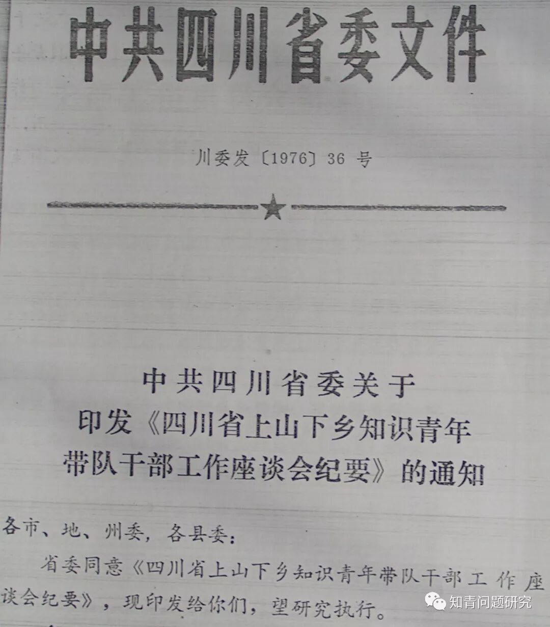 该通知指出,抽调一定数量的干部去带领知青,是完全必要的,这既能协助各级党委加强对知青的管理教育工作,也是广大干部下放劳动锻炼的一种形式,必须把抽调带队干部的工作认真做好。带队干部的主要任务,是在当地党委的领导下,协助社队干部和贫下中农,做好知青的管理教育和培养工作。该通知强调,要选派政治思想好、作风正派、能密切联系群众的同志担任带队干部。按照下乡知青人数1%的比例,由动员城市的县以上党委组织部门,从全民所有制单位的干部中抽调。带队干部中,要注意选派一定数量的女干部和领导骨干,分别参加地、县、区、社、场、队各级领导班子。分配带队干部时,既要根据知青人数的多少和分布情况,也要适当照顾系统,以利于对知青的管理教育。带队干部实行定期交替轮换的制度,一般一年轮换一次,每次轮换1/3到1/2。轮换名单和轮换时间,由动员城市与安置地区县以上党委组织部门直接联系商定等。这一文件的出台,标志着四川知青干部带队制度的正式建立。