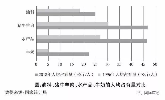 20世纪90年代以后,我国粮食自给率接近于世界平均水平。这说明从粮食供给上看,我国具有较高的粮食安全水平。但2005年以后,随着粮食需求量的急剧增加,粮食缺口也明显扩大,这在一定程度上表明中国粮食安全水平的下降。中国加入世贸组织后开放了部分农产品市场,同时,中国根据比较优势原理,也进口了一些本国生产成本相对较高的粮食,如小麦、玉米等,因此,粮食自给率有所降低。20世纪90年代以来,除奶类以外,中国蔬菜、水果、肉类和水产品等食物大多数年份为净出口,这表明中国绝大多数食物有较高的自给率。