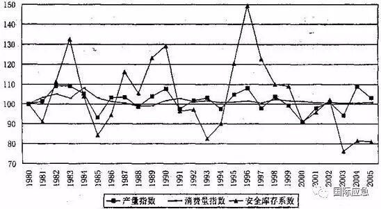一个国家或地区的粮食总产量基本上能够反映该国或地区的粮食供给能力,而粮食产量波动系数则能够反映粮食数量的稳定状况。波动系数越小说明生产的稳定性越强;反之则稳定性越弱。如用粮食总产量波动指数去考察我国近40年来粮食总产波动情况,可以看出我国粮食(谷物)产量波动幅度较小,粮食产量波动系数一般保持在4%以内,粮食生产的安全性还算较高。近40年来,我国粮食产量波动指数平均为基本上在3%左右,高于世界平均水平(2.84%),低于美国(9.81%)、法国(6.05%)和日本(6.19%)的粮食产量波动指数平均值,同时也低于印度的粮食产量波动指数平均值(3.84%)。