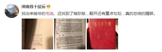 在这件事上,还有人“求人不如求老”。有网友晒出来姥爷的毛选,在姥爷当年的勾划总结里,时隔40多年,他看到那个曾经的年轻人对《毛选》的热爱。