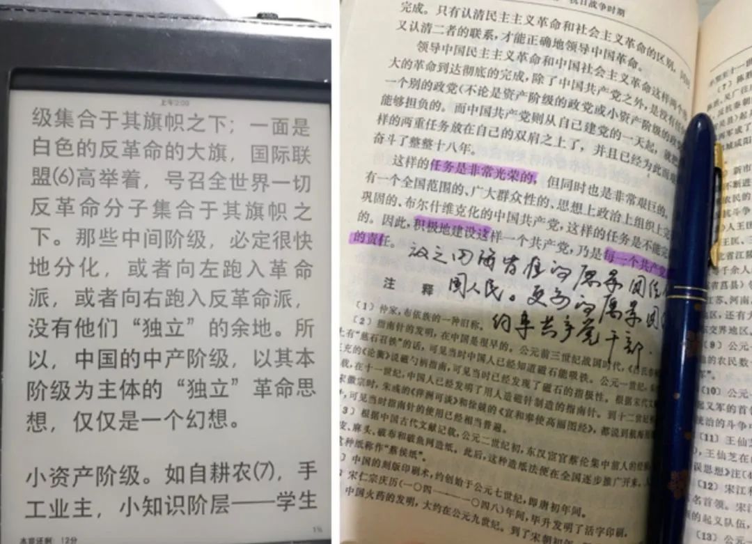 他们或者阅读电子书,更多的是阅读纸质书,并认真做了标注。