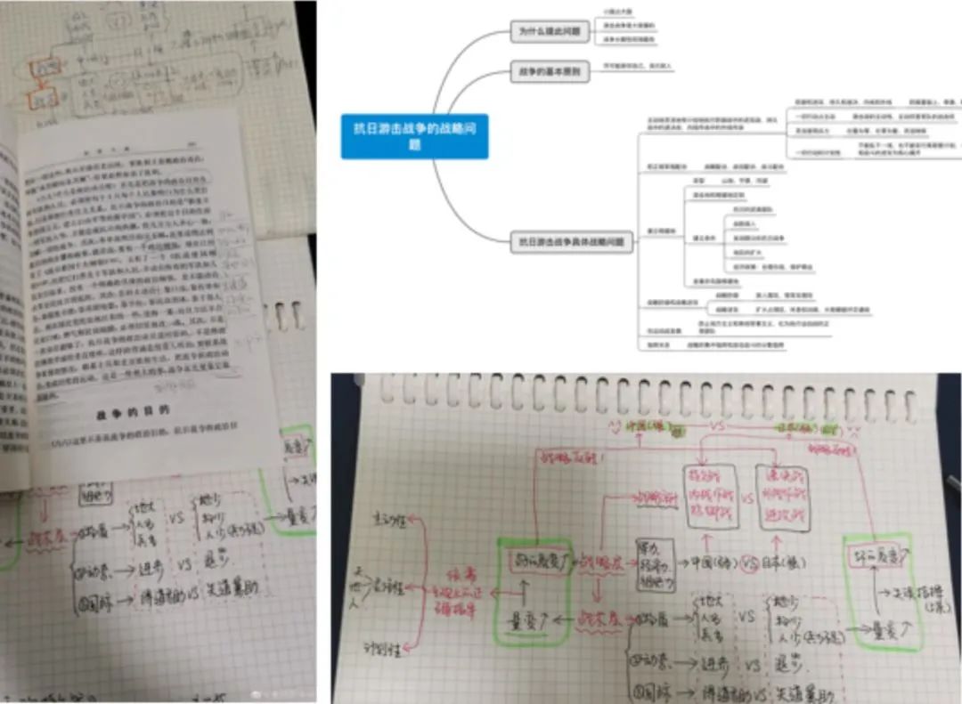 甚至一向喜欢自嘲为“学渣”的他们,开始借用工具或者手画《毛选》的思维导图,来加深自己对书本内容的认识