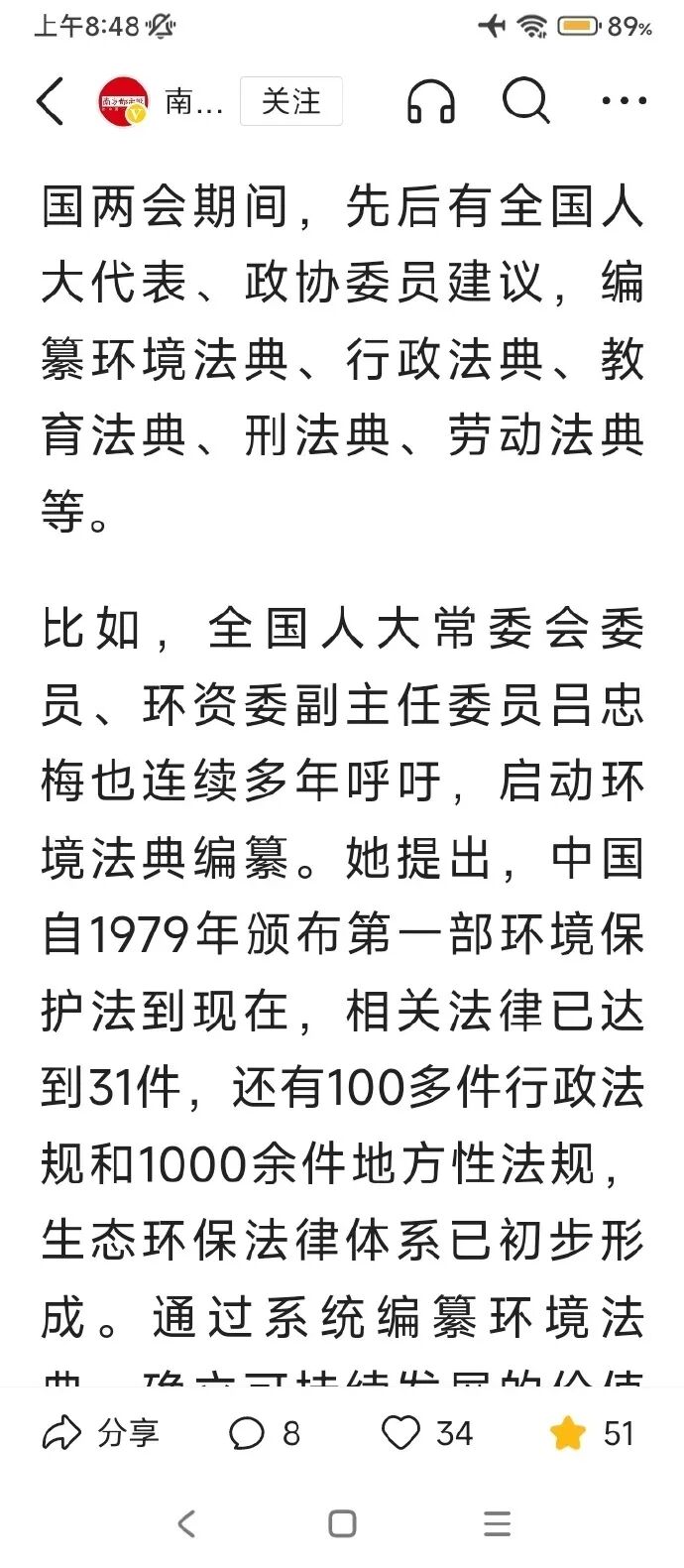 如果不放在“环境法典”里而放在别的地方,那试图尽量囊括环境方面所有规范的“环境法典”不就不完整了?而从图中人大代表所表达的来看,搞这个“环境法典”的初心动机(名义上)不就是尽量完整囊括环境有关的所有法律规范吗?如果根本无法做到,那一开始不就错了吗?