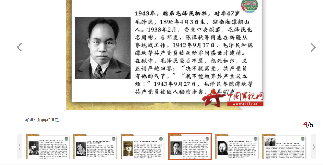 历史上,我们党的领导人,为信仰付出宝贵的生命。毛主席一家,为革命先后失去6位亲人:毛泽民(弟弟)、毛泽覃(弟弟)、杨开慧(妻子)、毛泽键(小妹)、毛岸英(子)、毛楚雄(毛泽覃之子)。