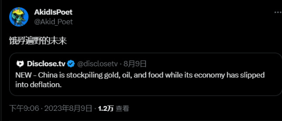 在她已经饿的没什么力气时,却在造谣、诅咒中国“饿殍遍野的未来”。