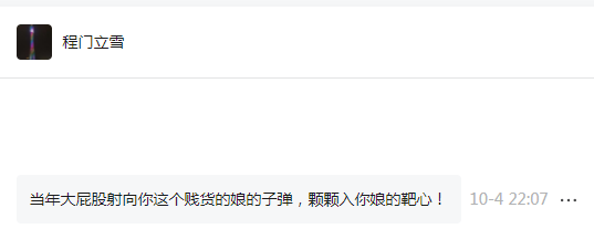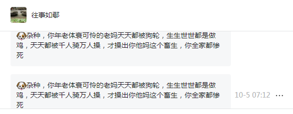 今天利用周末,将这个月初以来的留言和“私信”都浏览了一遍,居然发现从10月4号到6号,无底线诅咒谩骂我和我母亲的留言突然多了起来。