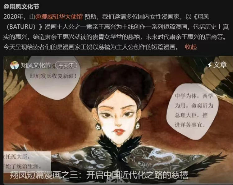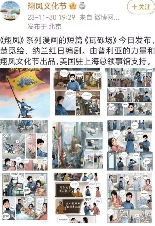 这就有意思了,一个男人,满独分子,封建文化爱好者,日伪政权的精神皈依者,慈禧和川岛芳子的粉丝,在美国、德国的支持下,在中国搞“女性文化”、“女权运动”……这缝合程度,实在是太克苏鲁了。翔凤和美国领事馆、德国大使馆最近主推的那个漫画《瓦砾场》,主打的元素是“满清、女权主义、女性肃亲王”,一个川岛芳子形象的女性“超级英雄”,挥舞着满清黄龙旗,来到一个科技发达却压迫女性的“现代社会”,目睹了“女婴被杀害”等残酷现实……只要不瞎,都能看明白它的险恶用心。