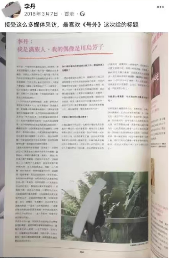 那个打拳、辱华的“翔凤文化节”创始人,叫做“李丹”。李丹,男性,1978年生,自称偶像是“川岛芳子”。