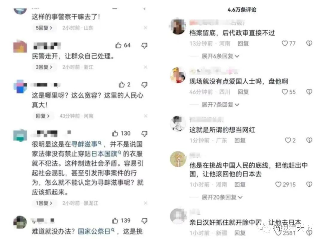 目前我国并没有明确的法律禁止穿戴日本国旗,这一事实让许多人感到困惑和无奈。所以,每到涉日的重大日子前后,总有日杂在网上网下打着穿衣服自由的借口各种搞事,不断挑衅着民众们的情感底线。