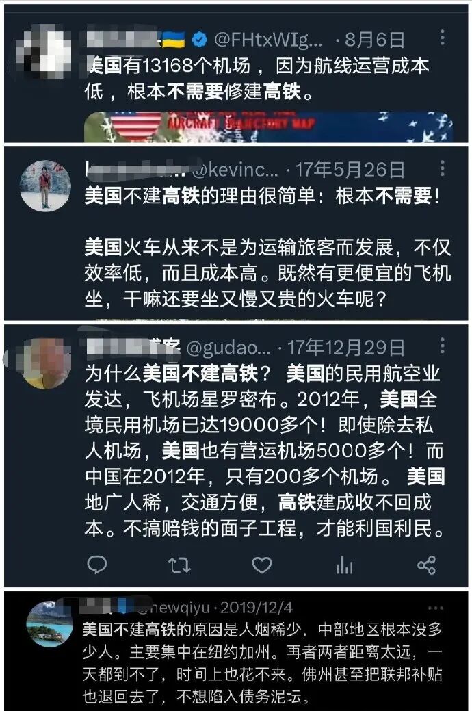 可是,即使如此也立即有大量的人出来吹捧。有意思的是,恰恰是这些突然出来吹捧美国这条假高铁的人,之前的话术是美国不需要修高铁。