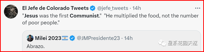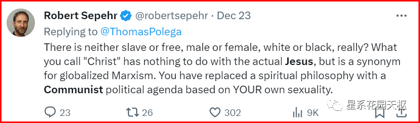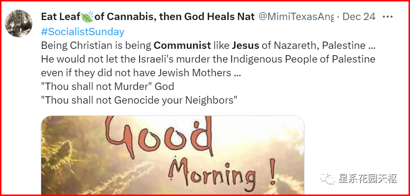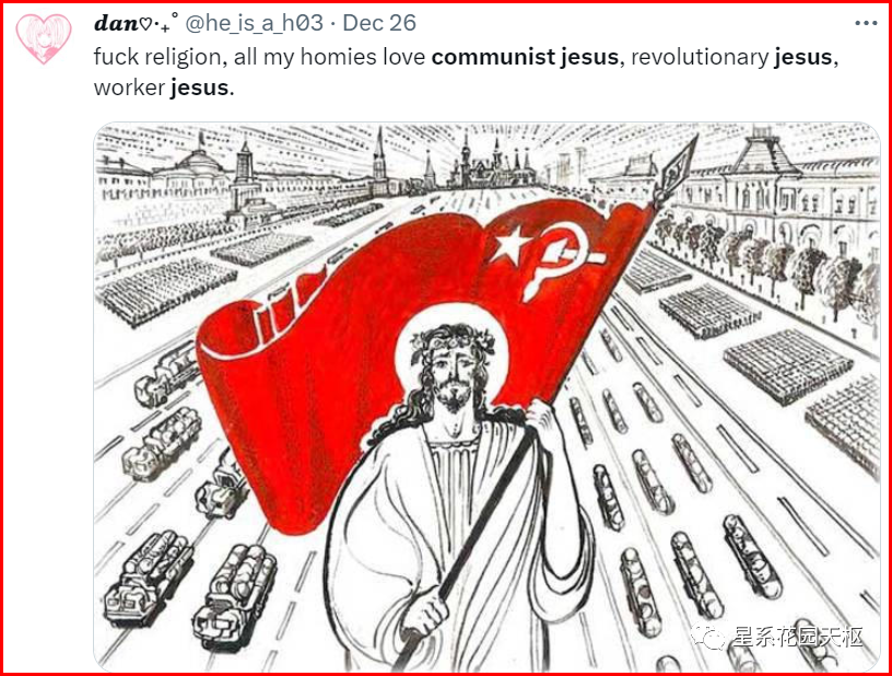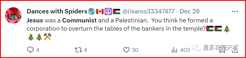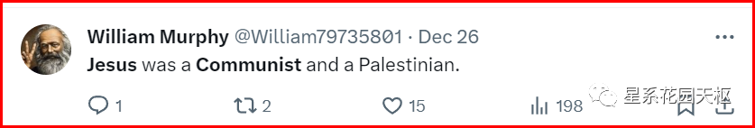 一位头像顶着卡尔·马克思画像的网友说道:耶稣就是共产主义者和巴勒斯坦人。