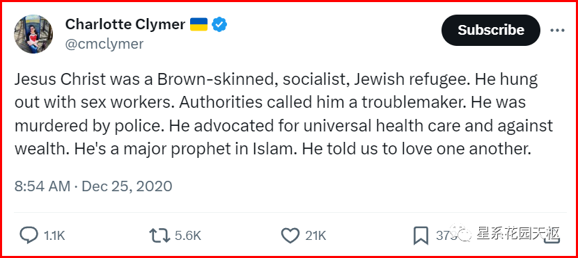 我查了下,其实这个话题并非是今年刚刚抛出来的,2023年只是因为以色列战争而导致该话题不但死灰复燃而且从星星之火演变成燎原之势。这是2年前圣诞节时一位大V归纳的美国左翼(主要是民主党)关于耶稣的认知: