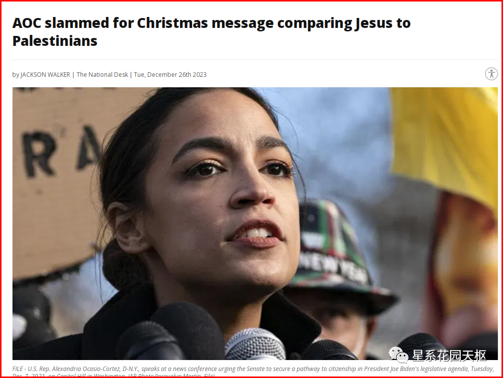 这位女议员,作为纽约民主党的代表,她长期反对以色列,并在圣诞节于Instagram上发布了一条长长的圣诞“解说”信息,将其作为对比的一部分。
