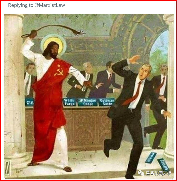 也有人强调:耶稣是共产党,你是认为他成立了一个公司,推翻了寺庙里银行家的桌子吗?