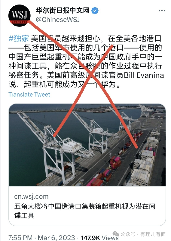 那么,这么个抽风似的决定是怎么来的呢?原因更让人瞠目结舌,居然是中国生产的港口起重机会危害美国的国家安全。
