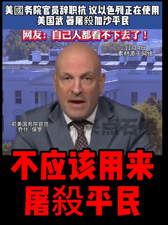 甚至是美国国务院内就有不少的工作人员、官员明确反对以色列在加沙所犯的罪行,反对美国对以色列的支持,甚至于以直接辞职表明态度。