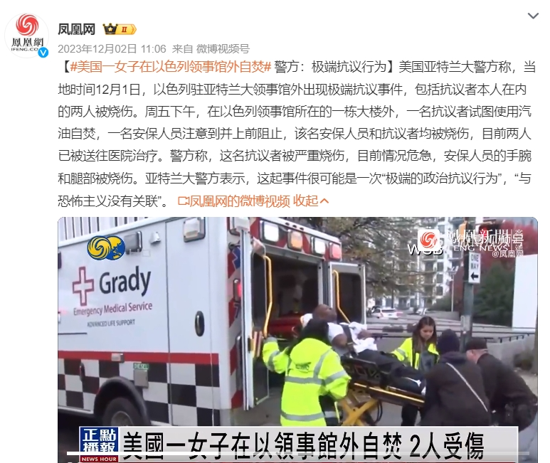 当然,美国民众的反对是无效的,而且还会给自己带来灾难。于是在去年12月,一名美国女子在以色列驻美国亚特兰大市的领馆前选择了自焚,想以如此激烈的方式唤醒美国政府的良知。