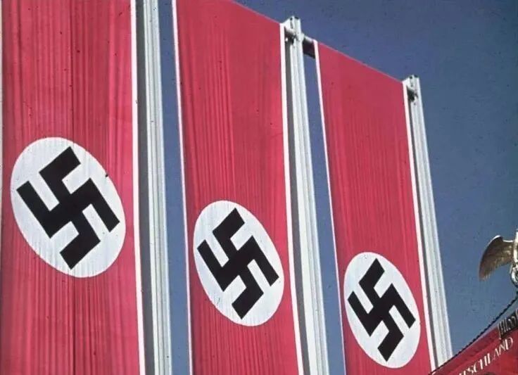 虽然纳粹德国有时也会把万字符当纳粹标志用,可纳粹德国的纳粹旗上,永远是那个倾斜的标准纳粹标志。