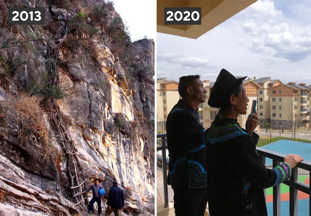 ▲ 2013年,四川省凉山彝族自治州昭觉县“悬崖村”阿土勒尔村的村民还住在悬崖之上,上山和下山全凭悬梯,攀爬落差达800米的山崖。2020年,“悬崖村”村民搬进新居,告别悬崖与天梯。 总体而言,中国共产党在其发展的各个历史阶段,都根据当时的具体情况创造性地运用和发展了马克思主义,始终致力于维护国家主权、维护和平、为人民群众谋幸福。这是中国革命事业历经曲折而不改的初心使命。