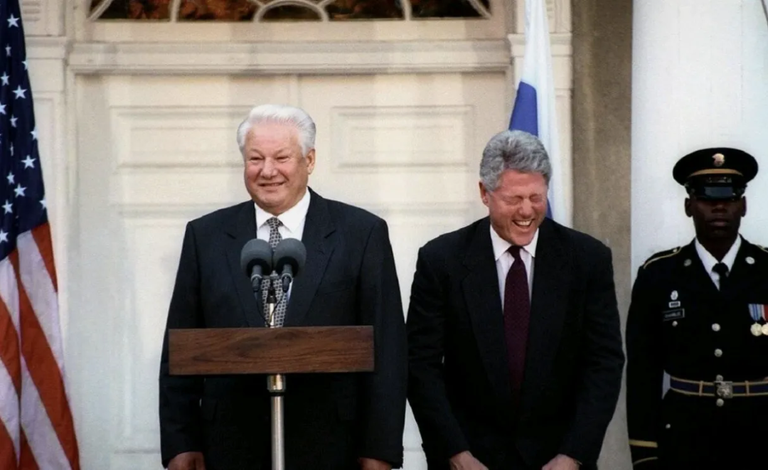 虽然叶利钦去世了,但30年前,叶利钦访美与克林顿那张合影照片,却一直传到现在。照片显示,克林顿站在叶利钦旁边,笑得眼泪都流出来,而叶利钦则却站在那里憨笑。正是这张照片,让美国出了一口50多年美苏争霸的气。