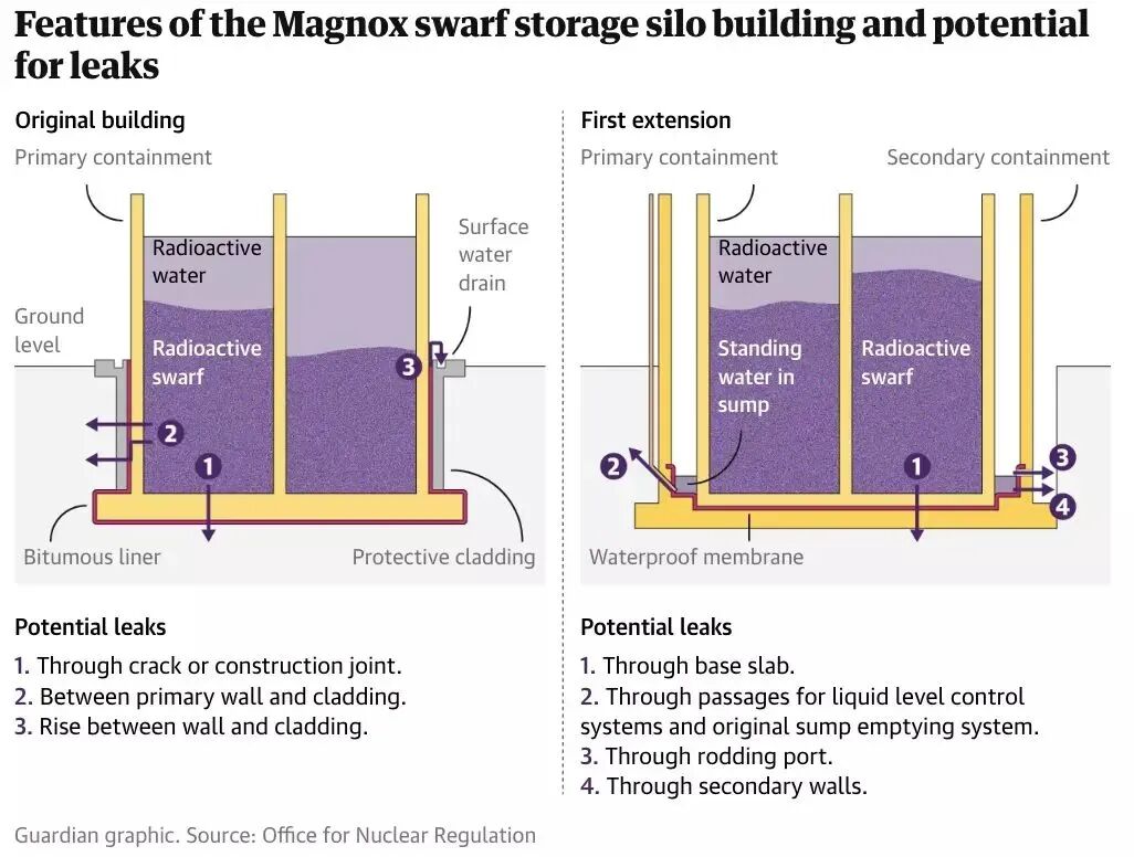 英国塞拉菲尔德核废料处理厂2019年就发生了泄露,他们向英国核监管办公室报告之后,英国政府直接选择了隐瞒。目前漏水问题还在继续,甚至变得越来越严重,含有放射性核废料的“液体”每天泄露约2.3-2.5吨。这种液体是一种溶解在水中的放射性镁合金碎屑,来自反应堆核燃料的废包壳。