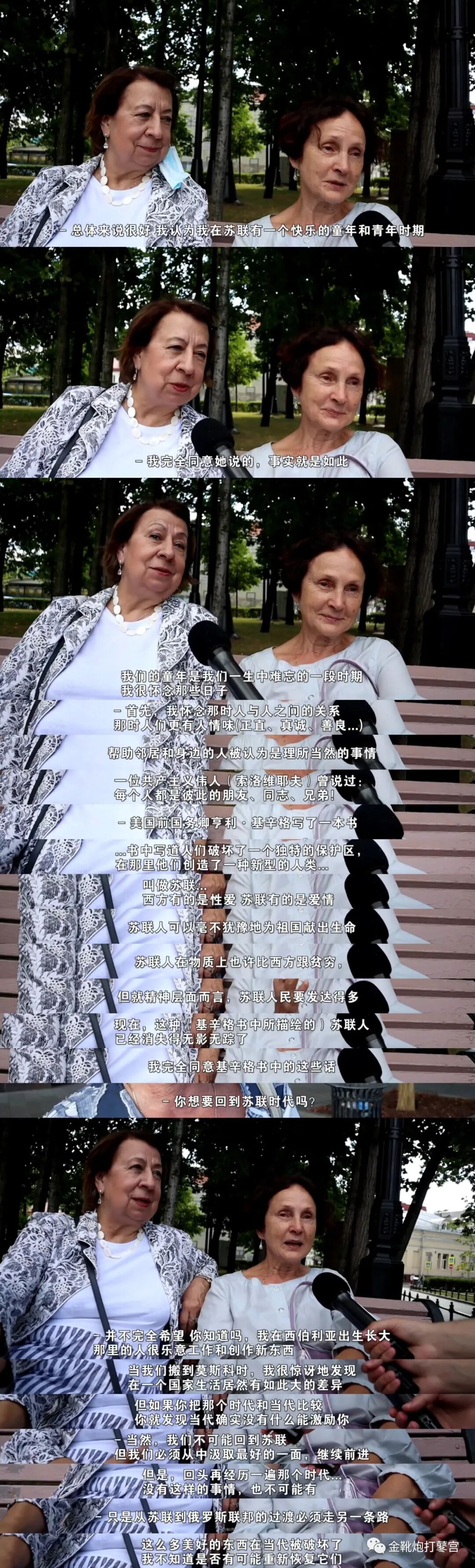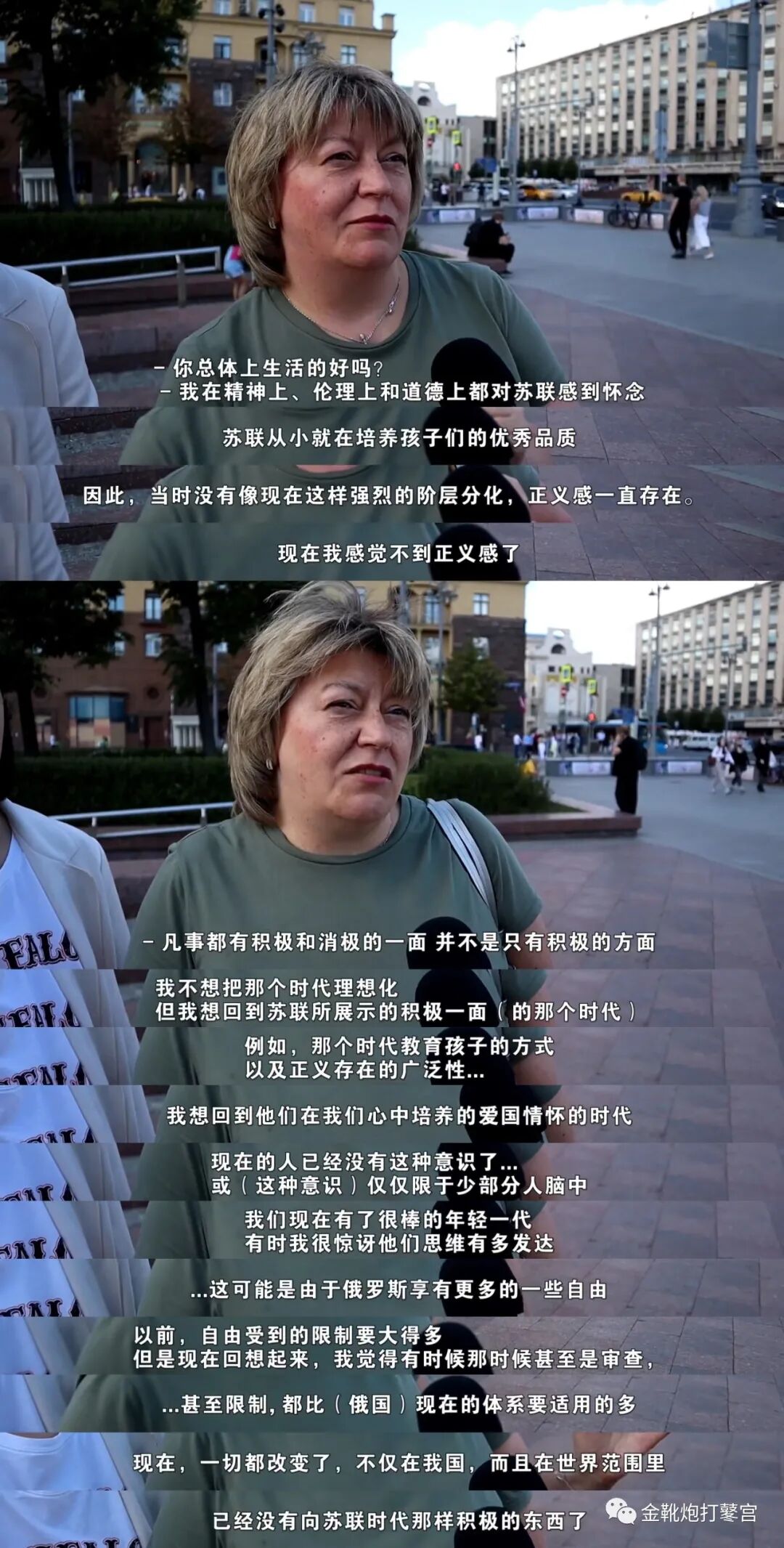 一年前,俄罗斯《商业咨询日报》称,最新民调显示,大多数俄罗斯受访者表示怀念苏联时代:21%的俄罗斯人认为苏联时代拥有光明的未来、稳定及安宁;其中军人、受过高等教育者以及60岁以上的人持这一观点最多;13%的俄罗斯人将苏联与积极的情绪、怀念和良好的回忆联系在一起;另有11%的人将苏联与他们自己美好的童年和青年时期联系在一起;10%的人会谈到苏联时期人民的兄弟情谊,还有8%的人怀念苏联时期的免费教育等等……