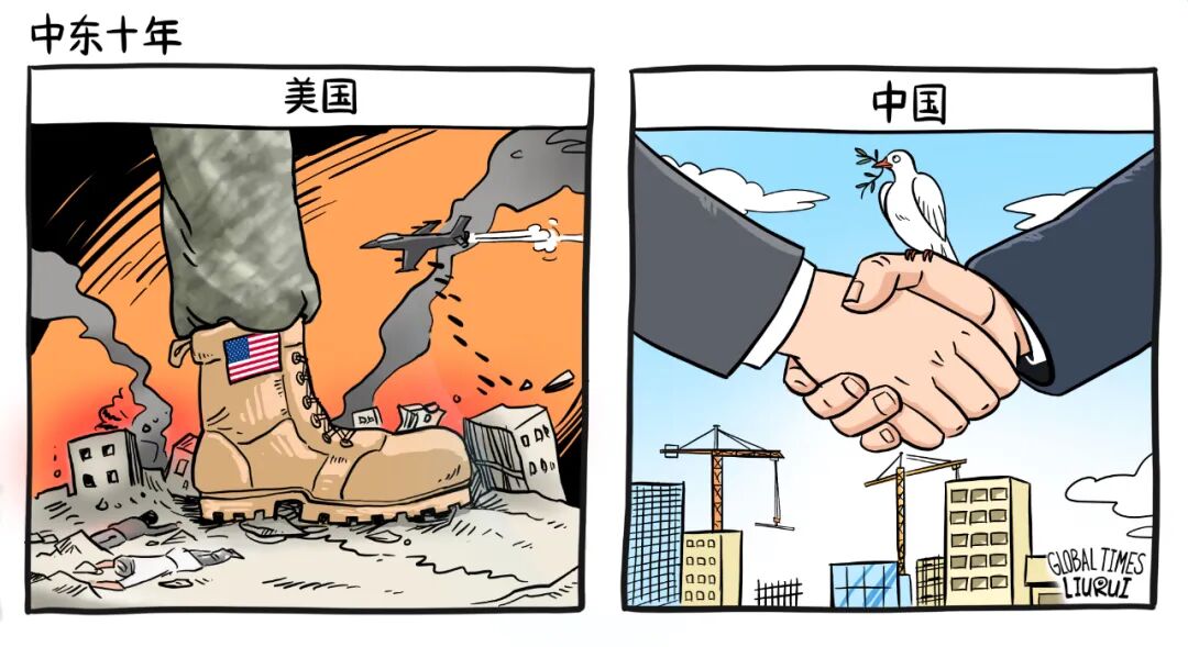 然而,有的国家把中东视为大国竞争的角斗场,挑动矛盾,加剧对抗,比如美国。有的国家则把中东当成风雨同舟的好兄弟,维稳促和,分享机遇,比如中国。今日果,昨日因。回溯十年,对比中美,一年一年说。