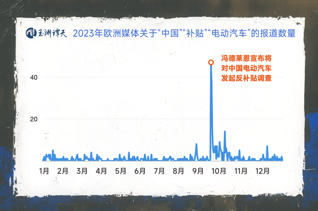 相较而言,欧洲媒体的报道高峰要晚一些,是等到了冯德莱恩正式确认将发起调查,欧洲媒体才针对“中国电动汽车”和“补贴”出现了几天集中的报道。