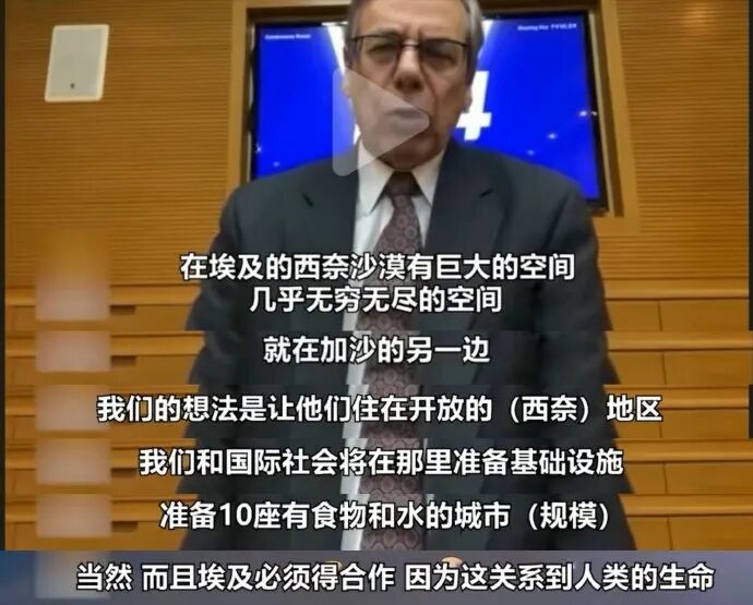 四、要求在加沙地带的巴勒斯坦人全部撤离,撤到埃及的西奈半岛的沙漠里,并要求埃及全部接收。