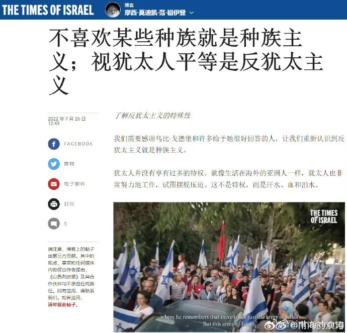 甚至于,连想和犹太人平等,也会被视为“反犹”呢!