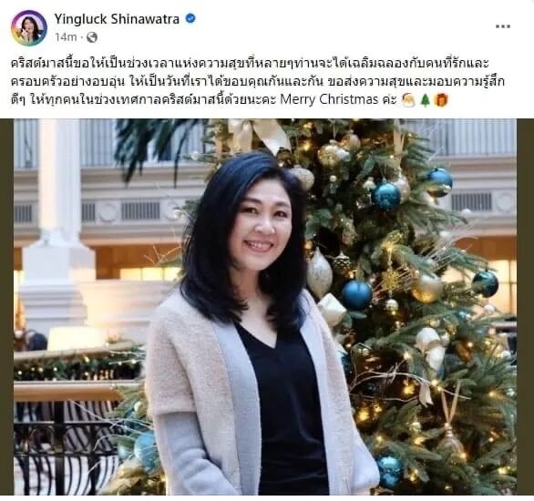 从英拉的图文看,她心情还很不错,贺词的对象是泰国人民。这表明她对特赦问题是比较乐观的。