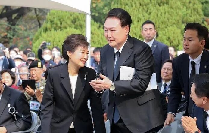 2023年下半年,尹锡悦因为过于亲美和日本排放核污水问题,导致支持率暴跌。为了巩固基本盘,他努力向朴槿惠示好,因为两人的支持者都属于保守阵营。