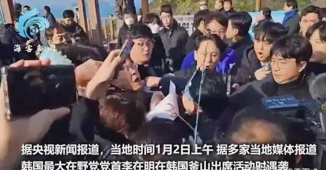 2024年1月2日,韩国最大的在野党共同民主党党首李在明,在釜山出席活动时遭遇暴徒持刀袭击。